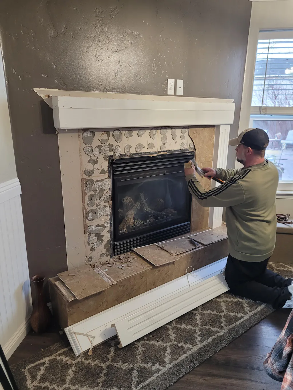 Completely transformed our boring, outdated, builder grade fireplace! So fast and easy to install on existing dry wall. Areas of the sheet rock that were damaged from taking out the previous tile, were mudded, sanded smooth and then primered before sticking them on. The stone sheets were easy to cut to fit around our new mantle and existing gas fireplace. We cut them with construction shears for most of them and also used a chopsaw to cut some. The stone heald up great with both methods and didnt chip. We used construction adhesive in some areas to insure a tight bond. The extra adhesive probably wasn't needed but, my husband is overly cautious. Shipping took about a week longer than first quoted, that was the only hiccup. We will definitely order this product again for other projects I have in mind down the line!